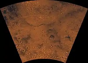 La densidad de los cráteres de impacto se utiliza para determinar las edades de la superficie de Marte y otros cuerpos del sistema solar.[32] Cuanto más antigua es la superficie, más cráteres presentes. Las formas de los cráteres pueden revelar la presencia de hielo en el suelo.