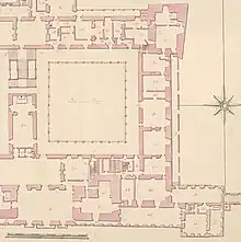 Siguiendo la distribución descrita por Juan Gómez de Mora, y que acompaña al plano homónimo realizado en 1625, sus estancias serían las siguientes (siguiendo la numeración del Plano de Mora:
