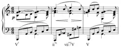 La pieza termina en mi bemol menor, la tonalidad menor paralela a donde comenzó (mi bemol mayor). Si bien no es inusual terminar una composición en tono menor en paralelo mayor, es mucho menos común encontrar una pieza que termine de esta manera.