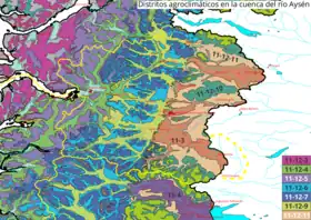 El Atlas agroclimático de Chile distingue 8 distritos agroclimáticos en la cuenca: