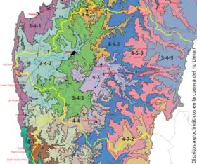El Atlas agroclimático de Chile distingue 10 distritos agroclimáticos en la cuenca: