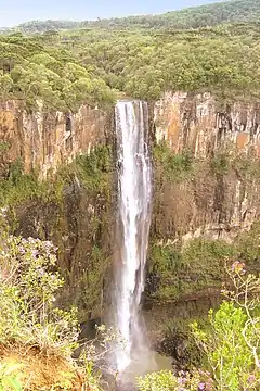 Parque Estatal del Caracol, localizado en Canela, Rio Grande do Sul, tiene como principal atracción la Cascada del Caracol, con 131m de altura y que se abre paso entre rocas basálticas de la Formación Sierra General;[52]