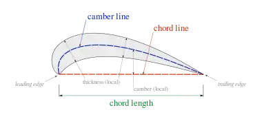 En la aeronáutica, el término cuerda se refiere a la línea recta imaginaria que une el borde de salida con el centro de la curvatura del borde de ataque de un perfil alar o álabe cualquiera. La longitud de la cuerda es la distancia entre el borde de salida y el punto del borde de ataque donde la cuerda se interseca con este último.[1]