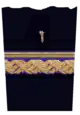 Los oficiales con la Especialidad de Derecho Internacional Militar, lucían los distintivos llamados "carlangas", que se llevan a ambos lados del cuello y que son un reminiscencia del galón que rodeaba el cuello y las solapas de los uniformes antiguos de los Auditores navales. Estas serán de 5,5 centímetros de largo por 1 centímetro de ancho, bordadas o en metal dorado.