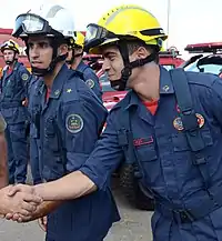 ![]() Militares estaduales del Cuerpo de Bomberos. | ||
