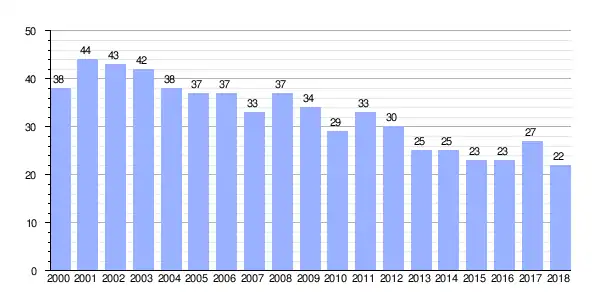 | Gráfica de evolución demográfica de Cuesta Santa Marta entre 2000 y 2018 |