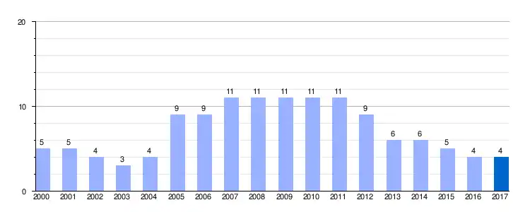 | Gráfica de evolución demográfica de Cuestahedo entre 2000 y 2017 |