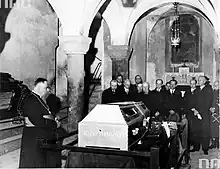 Después de la muerte del mariscal Piłsudski y sus solemnes funerales de estado, el arzobispo Sapieha después de varias negociaciones decidió que el cuerpo del mariscal estuviera provisionalmente en la Cripta de San Leonardo hasta que estuviese lista la cripta destinada para su sepultura, bajo el campanario de la catedral. Durante dos años, el ataúd de cristal con el cuerpo de Piłsudski fue un lugar de peregrinación para políticos y ciudadanos del común que rendían sus respetos al mariscal. Cuando, después de dos años, la cripta fue terminada, el gobierno determinó que el cuerpo permaneciera en la cripta de San Leonardo, en vez de ser trasladado a la cripta recién construida. En vista de estas circunstancias, Sapieha ordenó que el ataúd del mariscal fuera trasladado a la cripta preparada el 22 de junio de 1937.