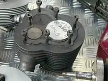 Las válvulas están en la culata, las de admisión en un lado y las de escape en el otro. Encima de cada fila de válvulas, se sitúa un árbol de levas que controla directamente las válvulas mediante un taqué o un diminuto balancín.