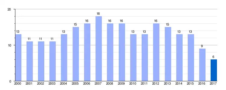 | Gráfica de evolución demográfica de Culebras entre 2000 y 2017 |