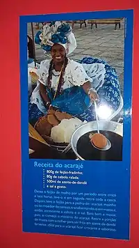 La cocina bahiana es la que más demuestra la influencia africana en sus platos típicos como acarajé, caruru, vatapá y moqueca. Estos platos son preparados con aceite de palma, extraído de una palmera africana traída a Brasil en tiempos coloniales. En Bahía existen dos maneras de preparar estos platos "afros". En una, la más simple, las comidas no llevan mucho condimento y son hechas en los terreiros de candomblé para ser ofrecidas a los orishás. En la otra manera, empleada fuera de los terreiros, las comidas son preparadas con mucho condimento y son más sabrosas, siendo vendidas por las bahianas del acarajé y degustadas en restaurantes y residencias.