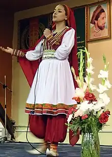 Los atavíos tradicionales masculinos de los afganos se resumen en el (sombrero), el turbante y un Chapán (paletó). La vestimenta típica de las mujeres (vestido afgano) está definida por un traje de dos piezas, que consta de un pantalón holgado usado debajo de una túnica de cuello alto y manga larga. Las ropas son ajustadas a la cintura y extendidas hasta los tobillos, con una falda recta abierta de ambos lados para facilitar el movimiento. Muchas mujeres completan el atuendo con una larga pañoleta elegantemente colgada sobre los hombros. Ropajes más elaborados y finos son los trajes adornados con hilos dorados y tejidos de seda en diversos colores.
