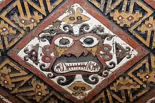 Posteriormente surge la cerámica tiahuanaco-wari, influida al parecer por la moche y la nazca; a la primera le debería la predilección por la forma escultórica, y a la segunda por el uso de una variedad de colores brillantes. Una característica peculiar es la representación de una divinidad que parece ser la misma que aparece en la Portada del Sol de Tiahuanaco.[23]