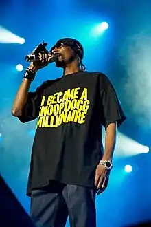 El Gangsta Rap como subgénero del West Coast rap predominó durante los años 1990, tanto en emisión en radio como en ventas. Después de que el grupo N.W.A se disolviera, Dr. Dre publicó The Chronic en 1992, alcanzando el #1 en las listas de éxitos de R&B/hip hop,[48] #3 en las listas de pop y #2 en los sencillos de pop con «Nuthin' but a "G" Thang». The Chronic llevó el west coast rap en una nueva dirección,[49] fuertemente influenciado por el P funk, fusionando sórdidos beats de funk con letras cantadas lentamente. A este estilo se le denominó g-funk y dominó el hip hop durante un buen número de años gracias a un grupo de artistas que publicaban en Death Row Records y entre los que se encontraban Tupac Shakur, cuyo sencillo «To Live & Die in LA» fue un gran éxito, y Snoop Dogg, cuyo Doggystyle incluía las canciones «What's My Name» y «Gin and Juice», que entraron en el top 10 de Estados Unidos.[50]