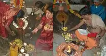 Aquellos hindúes asameses y bengalíes que siguen la rama del shaktismo, celebran un rito específico relativo a la menstruación de la diosa Kamakhya durante el denominado Ambubachi Mela, un festival anual de fertilidad que se celebra cada año durante el mes de junio, en el Templo Kamakhya, Guwahati, que se encuentra en el estado de Assam. Durante el Ambubachi (অম্বুবাচী) en el Templo Kamakhya se adora el ciclo menstrual anual de la diosa Kamakhya.[75] El ritual funciona de la siguiente manera: durante el festival, el templo permanece cerrado durante los tres primeros días y reabre sus puertas al cuarto y último día para recibir a peregrinos y fieles. Este templo constituye uno de los lugares de peregrinación más importantes de la India y atrae a millones de visitantes cada año, especialmente al Ambubachi Mela, que atrae a más de 100.000 peregrinos al día durante el mencionado festival, que dura 4 días.[76] Antes de que se clausure el templo para el Ambubachi, se coloca una tela blanca sobre la piedra en forma de ioni (vulva) en la que se adora a la diosa Kamakhya en el templo. Al final de Ambubachi, cuando se vuelve a abrir el templo y se lleva a cabo el Ambubachi Mela, los devotos reunidos reciben fragmentos de esa tela, entonces enrojecida para representar la sangre menstrual. Esta tela, conocida como Raktobostro (रक्तवस्त्र), es considerada especialmente sagrada por los hindúes al haber sido manchada por la 'sangre menstrual' de la diosa Kamakhya, que es considerada la Madre del Universo.[cita requerida]