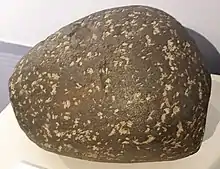 La cumberlandita es la roca estatal de Rhode Island y un tipo específico de roca plutónica llamada troctolita melanocrática o melatroctolita.[1][2] Se puede encontrar en un 4 acres (0 km²) lote en Blackstone Valley, Cumberland en Iron Mine Hill en Franklin Quadrangle, justo al este de Woonsocket.[3] Se pueden encontrar más rastros esparcidos por toda la cuenca de la Bahía de Narragansett hasta Martha's Vineyard.[4] La cumberlandita no es exclusiva de Rhode Island, sino que también se encuentra en Taberg, Suecia.[4] Debido a sus altas cantidades de hierro, es ligeramente ferrimagnético.