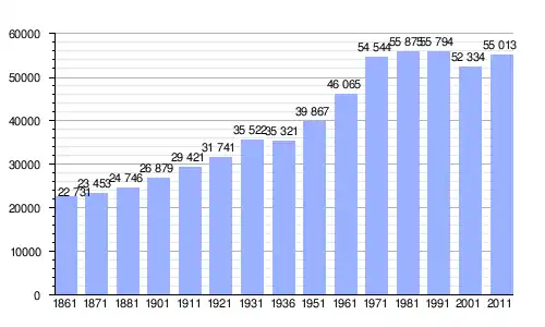 Gráfica de evolución demográfica de Cúneo entre 1861 y 2011