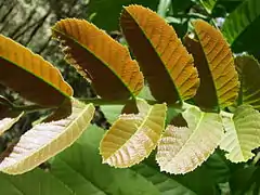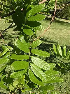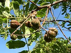 Es un árbol de cerca de 7-9 m de altura, y tronco de hasta 8 dm de diámetro, corteza externa fina, generalmente rugosa y marcada por cicatrices en su fase joven, de coloración parda, y cáscara interna castaña-rojiza; glabro (inerme), de copa alargada. El follaje es persistente, verde oscuro. Las hojas son compuestas, pinnadas, alternas, presenta 16-20 folíolos lanceolados, bordidentados, glabros en el haz, y nervaduras pubescentes en el envés. Tiene flores pequeñas, en panículos de 1 a 2 dm de largo, blancuzcas. Florece en verano y sigue en otoño. El fruto es una cápsula con 1-3 semillas, ovoides, negras brillantes, y arilo amarillo anaranjado.