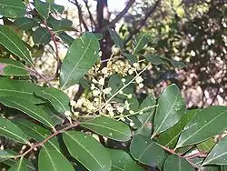 ![]() Hojas y flores del Tuckeroo en el Parque nacional Wyrrabalong, Australia | ||