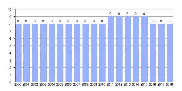 | Gráfica de evolución demográfica de Curra entre 2000 y 2018 |