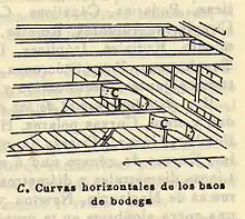 - Curva horizontal: es la pieza que se coloca horizontalmente y fija la extremidad de un bao a uno de los costados del barco. Suele adaptarse también para unir los falsos baos a los entremiches. (ing. Lodging knee).