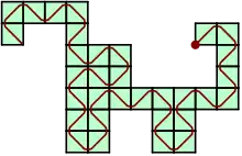- La curva del dragón puede teselar el plano. Un posible enlosado reemplaza cada borde de un teselado cuadrado con una curva de dragón, utilizando la definición recursiva del dragón a partir de un segmento recto. La dirección inicial para expandir cada segmento se puede determinar a partir del color de las casillas de un tablero de ajedrez, disponiendo segmentos verticales en las casillas negras y fuera de las blancas, y expandiendo segmentos horizontales en casillas blancas y fuera de las negras.[4]