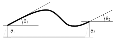 Para una viga elástica en la que se aplican solo momentos M1 y M2, la forma de la curva elástica depende solo de dos parámetros independientes, la forma aproximada de la deformada dependerá del valor y signo relativo de estos momentos, siendo un caso típico el mostrado en la figura adyacente. Escribiendo la ley de momentos flectores para los puntos intermedios de la viga y escogiendo las condiciones de contornos llegamos a la ecuación diferencial siguiente:
