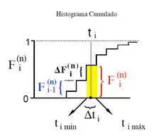 De la misma forma se traza un histograma acumulado como una sucesión de peldaños de altura para producir la escalera .