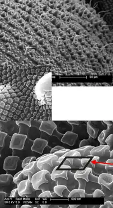 - Células epiteliales. Constituyen la mayoría de las células de la epidermis y son las responsables de la secreción de los componentes moleculares de la cutícula a través de las numerosas microvellosidades, llamadas canales porosos, que poseen; asimismo, a través del extremo superior de los canales porosos se secretan las capa de ceras y el cemento de la epicutícula. Estas células producen también el líquido exuvial que disuelve la parte interna de la cutícula vieja durante la ecdisis (muda).