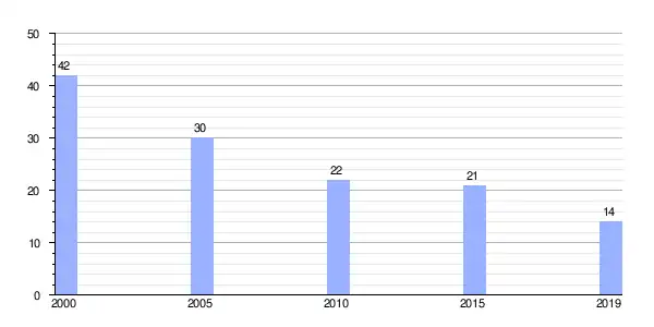 | Gráfica de evolución demográfica de Cutián (aldea) entre 2000 y 2019 |