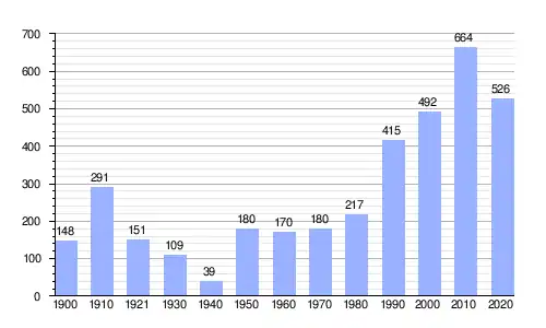 En 2020, la localidad tuvo una disminución del 2.4 % de su población con respecto al censo anterior en 2010.[8]