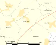 Cuvillers es una población y comuna francesa, en la región de Norte-Paso de Calais, departamento de Norte, en el distrito de Cambrai y cantón de Cambrai-Ouest.