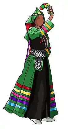 El traje de gala, tendrá al verde como protagonista, pues da cuenta del florecimiento de la cuyaca y de la virgen el día 16 de julio. Verde, negro y rojo serán los colores del vestuario y cintas multicolores bordeando los brazos, el ruedo de la falda y la espalda a modo de capa.