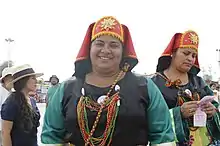 El traje es una referencia al vestuario de pastoras del altiplano,[2] siendo el vestido una estilización del akso.[3][4] Lleva faja de lana, cubierta con monedas y abalorios y un bolsillo a modo de chuspa donde llevan sus libros de cantos. Varios collares largos cubren el pecho; pueden estar alrededor de este o entre las dos cucharas que utilizan en el frente, a modo de tupus. Para las cuyacas de Iquique, si la parte redondeada de las cucharas mira hacia arriba, la mujer es casada. Si miran hacia abajo, es soltera. Para las cuyacas de Victoria Vernal, todas son solteras. También llevan honda o guaraca de lana, como referencia al gesto del pastoreo, con la cual las mujeres del altiplano arrean los camélidos. Estas guaracas largas y con pompones se entrelazan para formar variadas figuras y durante todo el paso básico, se baten en el aire a modo de remolino por sobre la cabeza. Sobre esta usan phanta, que es una especie de corona rígida que cubre la frente y se desplaza hacia atrás como paño, en la cual incorporarán elementos cósmicos como soles, estrellas o lunas.