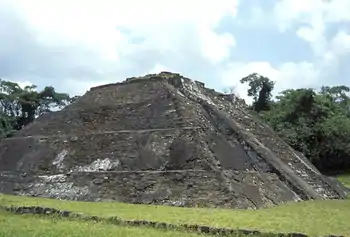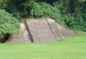 Esta estructura fue remodelada en tres ocasiones; la última, en 1400, tiene influencia azteca. Sobre la estructura se encontró un monolito de dos metros de altura.