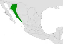Se distribuye en gran parte del territorio de Sonora y Sinaloa en México. Habita matorrales xerófilos del desierto sonorense, en matorrales espinosos cercanos a la costa y en selvas bajas caducifolias. En elevaciones de hasta 1070 m s. n. m.[1]
