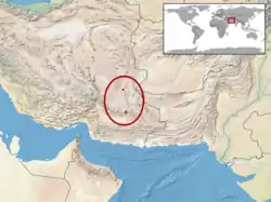Es endémica de una zona semidesértica de la provincia de Sistán y Baluchistán, al sudeste de Irán. Su rango altitudinal oscila entre 1000 y 1300 m s. n. m..