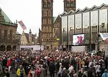 Día de la Iglesia en el "corazón" de la Ciudad Anfitriona (aquí: la Noche del Encuentro 2009 en la plaza del Mercado de Bremen)