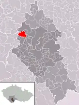 Se encuentra ubicada en el centro-sur de la región, en la zona de la selva de Bohemia, a poca distancia al sur de la ciudad de Praga, de la orilla del río Moldava —el más largo del país, afluente del río Elba— y al norte de la frontera con Austria.[1]