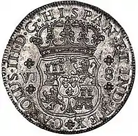 El real de a ocho, también conocido como ceca y acuñado como "tálero", por su parecido con la moneda austriaca Thaler, era la base en la conversión de la moneda de plata de a ocho reales (denominada Carolus), moneda que fue el primer dólar de plata. El valor de ⅛ de real era 12,5 centavos de dólar, denominado popularmente Bit. En algunas zonas de Estados Unidos todavía se conoce a la moneda de 25 centavos de dólar como two bits. Los billetes que se imprimían llevaban obligatoriamente las monedas de a 8 impresas.