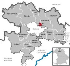 ![]() Dörfles-Esbach Ubicación en el estado de Baviera | ||