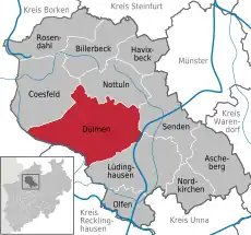 ![]() Localización de Dülmen en el distrito de Coesfeld | ||
