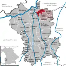 Se encuentra ubicado al oeste del estado, en la región de Suabia, a poca distancia de la frontera con el estado de Baden-Wurtemberg y al sur del río Danubio.