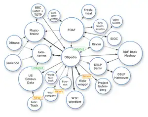 DBpedia está interconectada con GeoNames, Musicbrainz, CIA World Factbook, Proyecto Gutenberg, Eurostat, entre otros.[cita requerida]