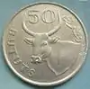 50 Bututs | Cuproníquel | Circular | 9,9 gr. | 2,5 mm | 28,5 mm | Estriado | Buey doméstico africano y facial | Escudo nacional y año |