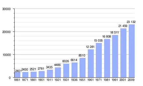 | Gráfica de evolución demográfica de Dalmine entre 1861 y 2009 |