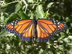 La mariposa monarca tiene colores vivos para espantar a posibles depredadores. Esta estrategia evolutiva funciona porque la mayoría de los depredadores asocia colores chillones (especialmente naranja, amarillo y negro), con veneno y otras propiedades desagradables. A este fenómeno se le llama aposematismo o coloración de aviso.