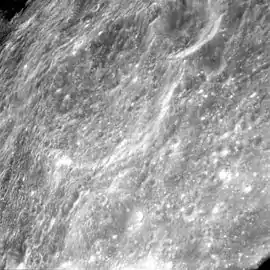 ![]() Imagen oblicua desde el Apolo 17 del cráter Danjon (el de mayor tamaño) y de D'Arsonval (abajo centro), vistos desde el sur | ||