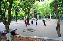 - La danza Yi (佾舞, literalmente, "la danza fila"), fue originalmente una danza de la corte, pero fue adoptada y pasó a formar parte de una ceremonia del confucianismo. Esta antigua danza se puede realizar con filas de bailarines que sostienen plumas de faisán y flautas de color rojo en una formación cuadrada (danza Civil) o los bailarines pueden portar un escudo y un hacha de batalla (Danza Militar). La tradición de baile en la cual los bailarines sostienen elementos como penachos de plumas se remonta a la dinastía Shang.[15] La ceremonia más importante se realiza con 8 filas de 8 bailarines (las ocho danzas Yi, 64 bailarines en total). Originalmente estos bailes se realizaron con 6 filas de bailarines (36 bailarines en total) en los templos confucianos ya que el arreglo de 8 filas estaba restringido a la corte imperial,[16][17] pero posteriormente se autorizó a realizar la danza 8 hileras de bien en la base de que se le dio el título de rey por un emperador.[18] Una versión modernizada de tales actuaciones se presentan para los turistas en el templo confuciano en Qufu.[19] Esta danza confuciano también se realiza en Taiwán y Corea.