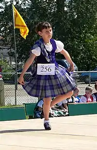 Highland dance o danza de las tierras altas escocesas (en gaélico escocés: dannsa Gàidhealach)[1] es un estilo de baile competitivo desarrollado en las Tierras Altas de Escocia en los siglos XIX y XX, en el contexto de competencias en eventos públicos como los Juegos de las Tierras Altas. Fue creado a partir del repertorio de danzas folclóricas gaélicas, pero formalizado con las convenciones del ballet,[2] y ha estado sujeto a influencias de fuera de las Highlands. El baile de las tierras altas se realiza a menudo con el acompañamiento de la música de gaita de las tierras altas, y los bailarines usan zapatos especializados llamados ghillies. Ahora se ve en casi todos los eventos de los juegos de las Highlands de la actualidad.